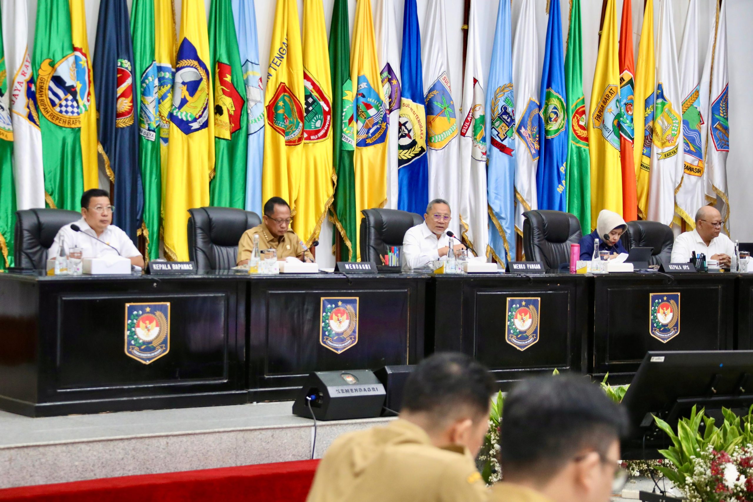Rapat tersebut dihadiri Wakil Menteri Dalam Negeri, Bima Arya Sugiarto, Sejumlah narasumber yakni Kepala Badan Pusat Statistik (BPS) Amalia Adininggar Widyasanti, Kepala Badan Pangan Nasional (Bapanas) Arief Prasetyo Adi, serta Pelaksana Tugas (Plt.) Deputi II Bidang Perekonomian dan Pangan Kantor Staf Presiden (KSP) Edy Priyono.