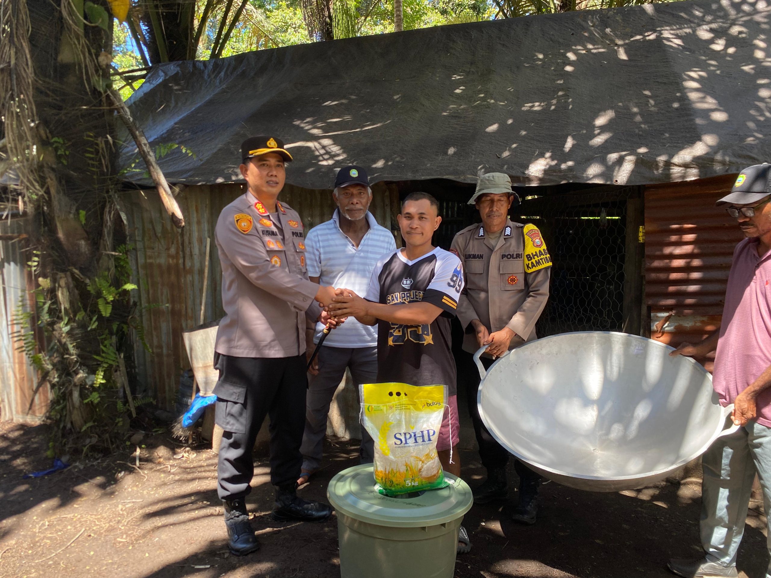 HALTIMTV.COM – Jajaran Polres Halmahera Timur menyalurkan bantuan sosial berupa Alat Penunjang Produksi Gula Merah serta Pembinaan kepada Petani Nira.