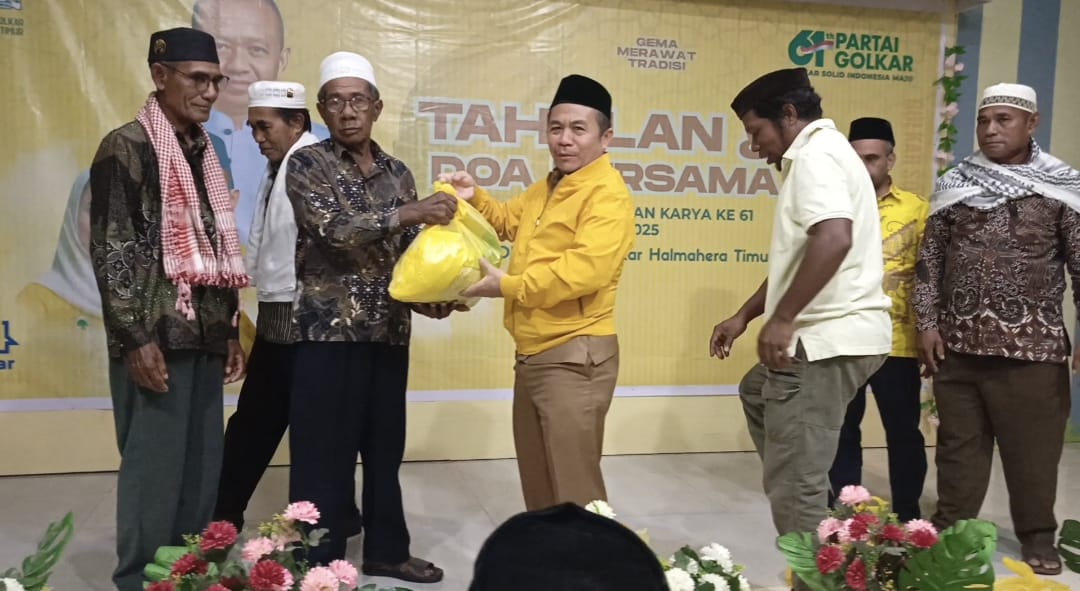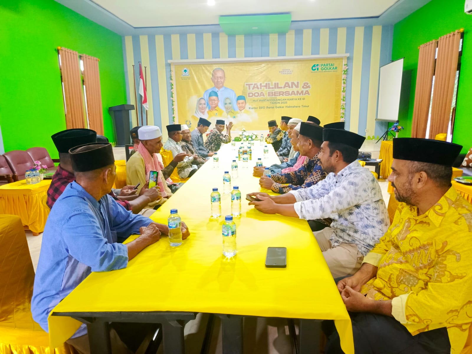 Peringatan Hari Ulang Tahun Partai Golkar di Halmahera Timur dipimpin langsung oleh Ketua Dewan Pimpinan Daerah (DPD) II, Anjas Taher,SE,MSi, dengan menggelar Tahlilan dan Doa Bersama yang berlangsung di Aula Penginapan Marga, Desa Soagimalaha, Kecamatan Kota Maba.
