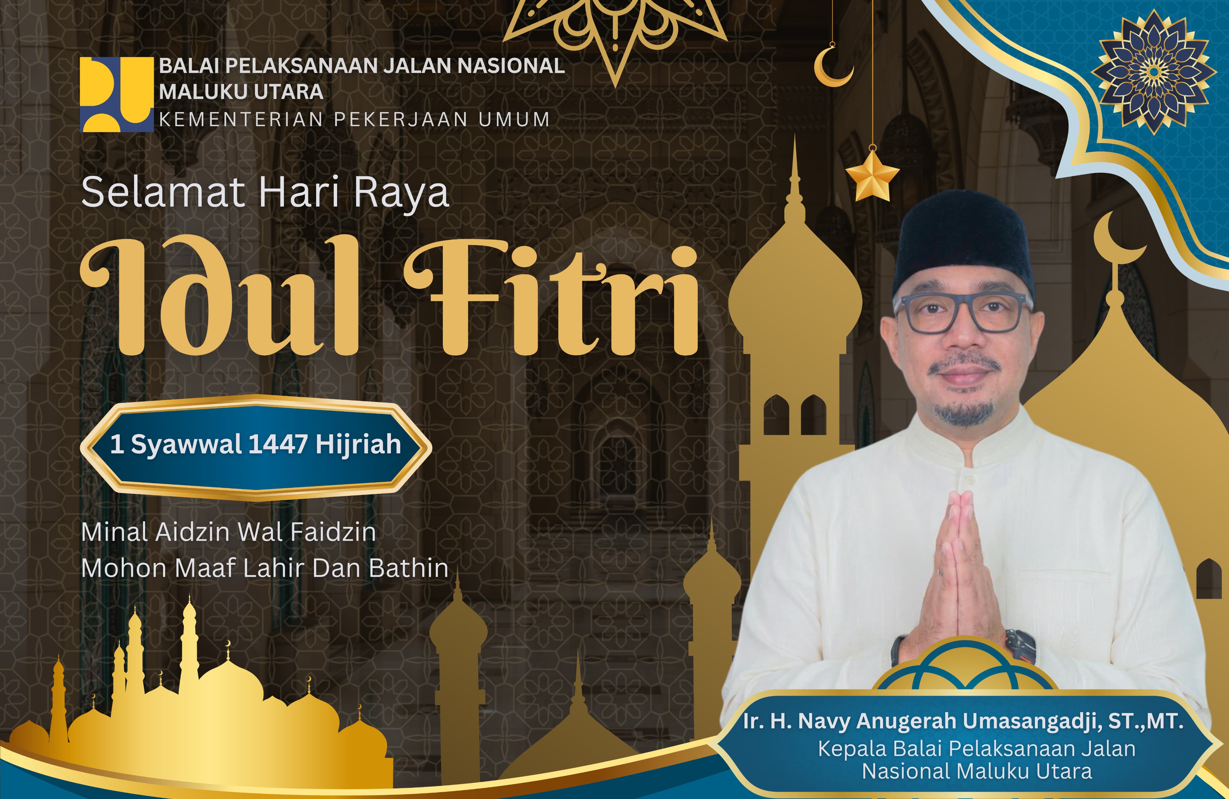 HALTIMTV.COM – Kepala Balai Jalan Nasional (BPJN) Provinsi Maluku Utara Beserta Seluruh Jajaran Mengucapkan SELAMAT HARI RAYA IDUL FITRI, 1 SYAWAL 1447 HIJRIYAH.