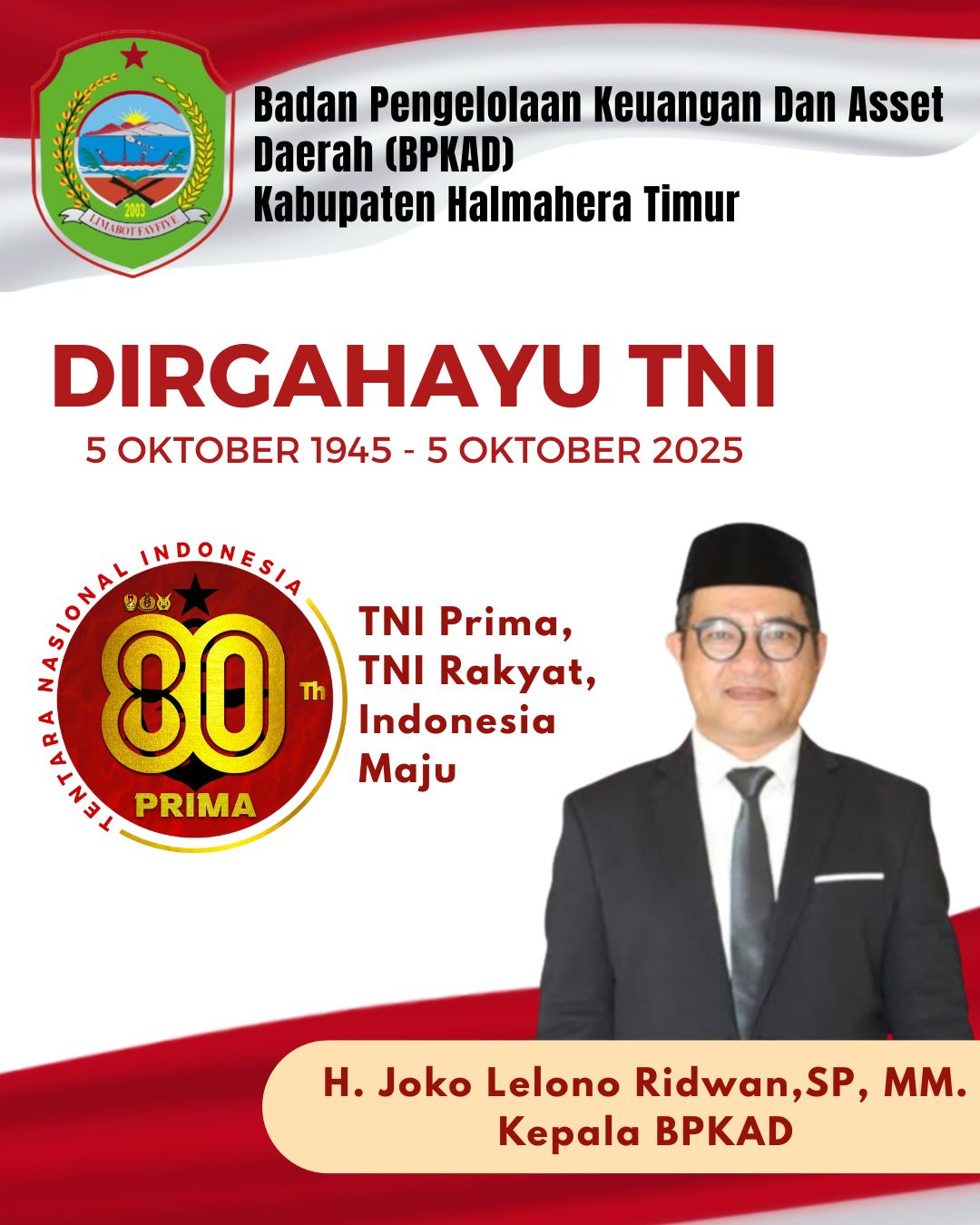 BERITA IKLAN : Kepala BPKAD Kabupaten Halmahera Timur Mengucapkan Dirgahayu TNI Tahun 2025