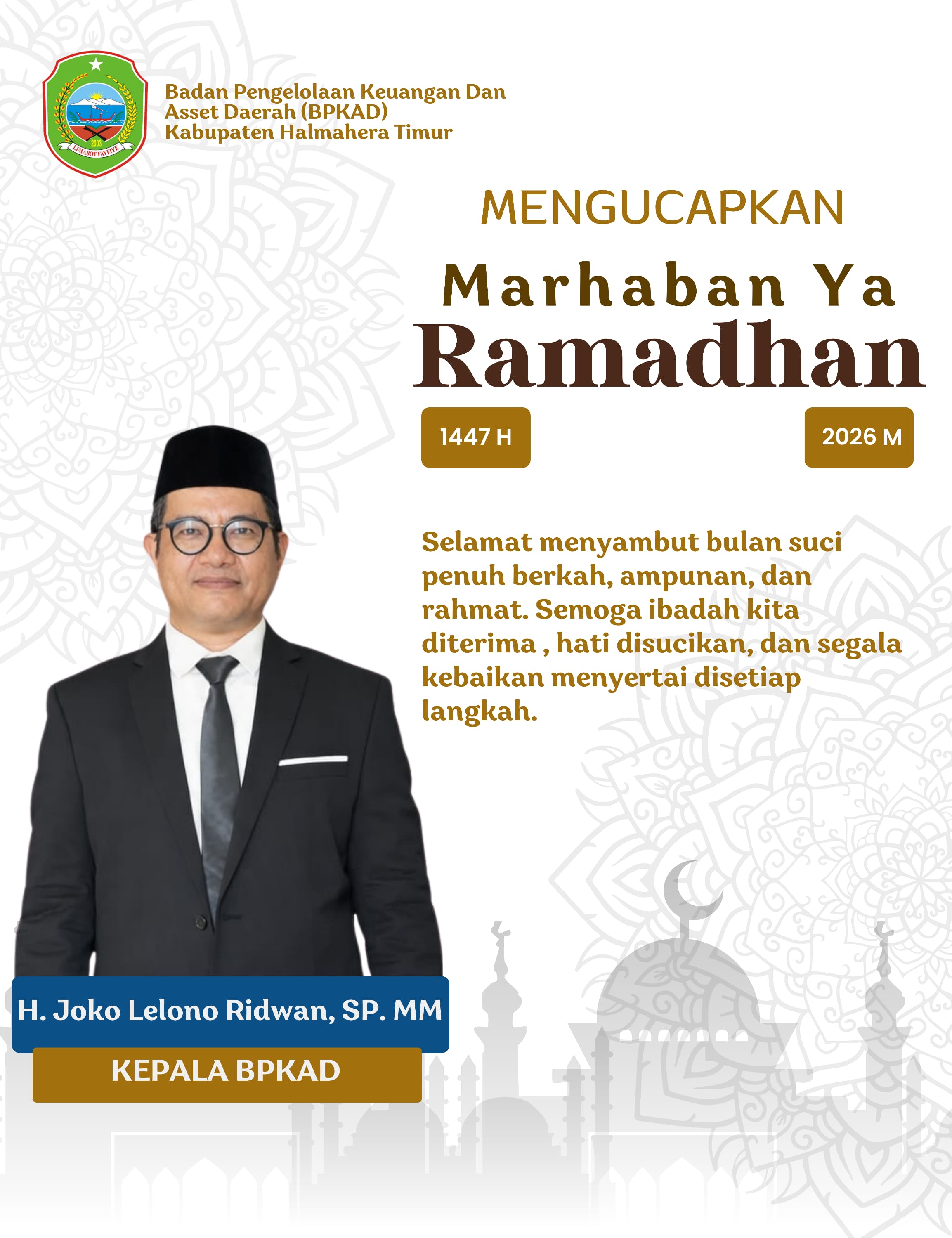 BERITA IKLAN : Kepala BPKAD Kabupaten Halmahera Timur Mengucapkan Marhaban Ya Ramadhan 1447H