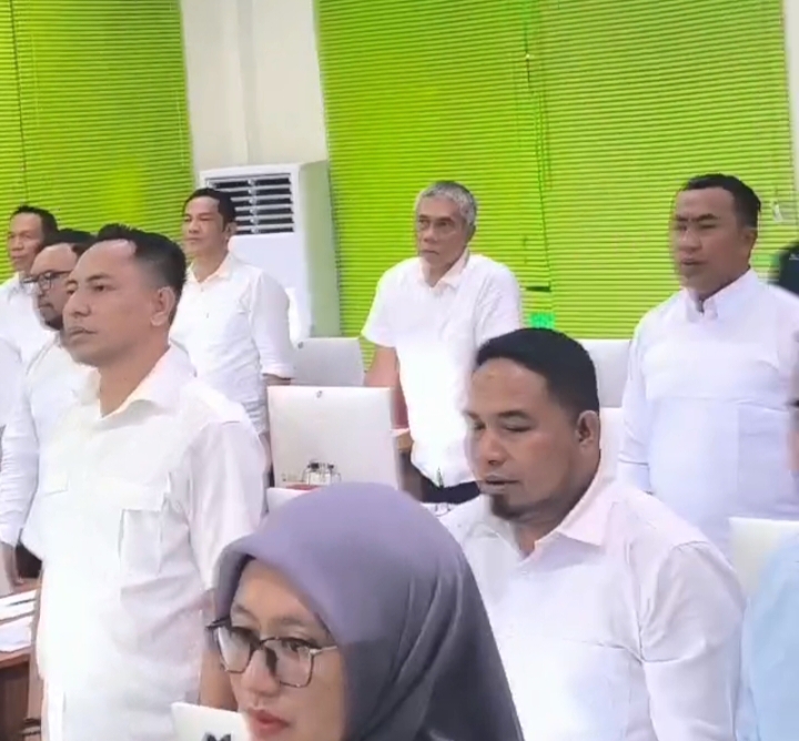 Tampak dalam gambar (Belakang) Kepala Bagian Komunikasi dan Dokumentasi Pimpinan Pemkab Haltim, Yusuf Thalib bersama sejumlah ASN lainnya saat menyanyikan lagu Indonesia Raya dalam Pembukaan Uji Kompetensi ASN.