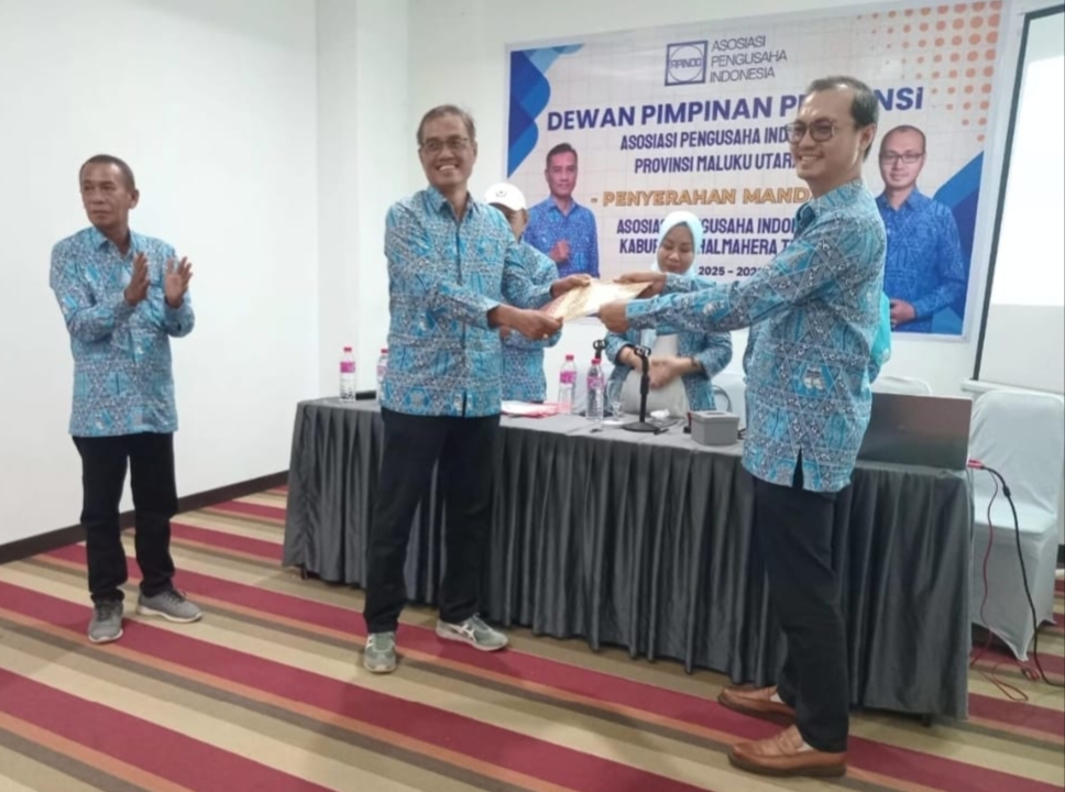 Penyerahan tugas dan tanggungjawab Kepengurusan itu dilakukan langsung oleh Ketua Dewan Pimpinan Provinsi Asosiasi Pengusaha Indonesia (DPD – APINDO) Maluku Utara, Ghazali Abdul Muthalib.