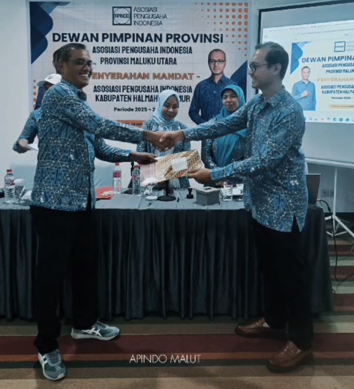 Penyerahan tugas dan tanggungjawab Kepengurusan itu dilakukan langsung oleh Ketua Dewan Pimpinan Provinsi Asosiasi Pengusaha Indonesia (DPD – APINDO) Maluku Utara, Ghazali Abdul Muthalib.