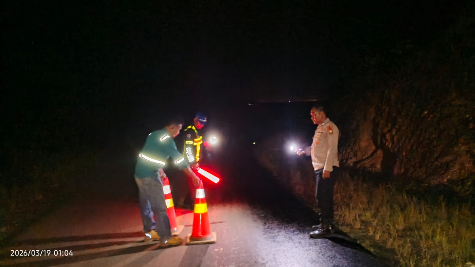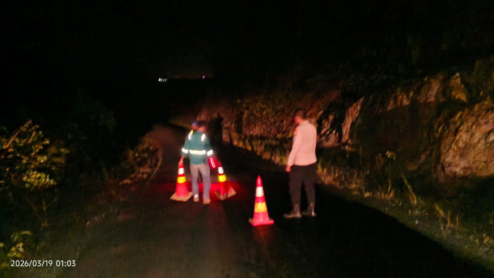 Dirinya menguraikan bahwa pihaknya melakukan pemasangan Cone dan yang sudah terpasang sebanyak 7 unit serta Sebagian lagi kata dia menggunakan Daun daun yang ada disekitar.