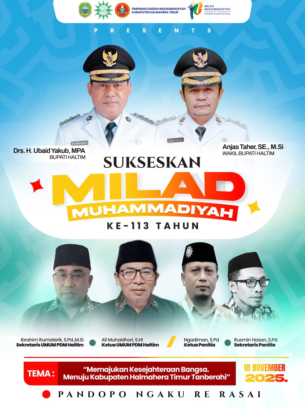 Ia juga menambah bahwa Milad Muhammadiyah ke-113 tahun 2025, mengangkat tema” Memajuhkan Kesejahteraan Bangsa, Menuju Halmahera Timur Tanbirahi”.