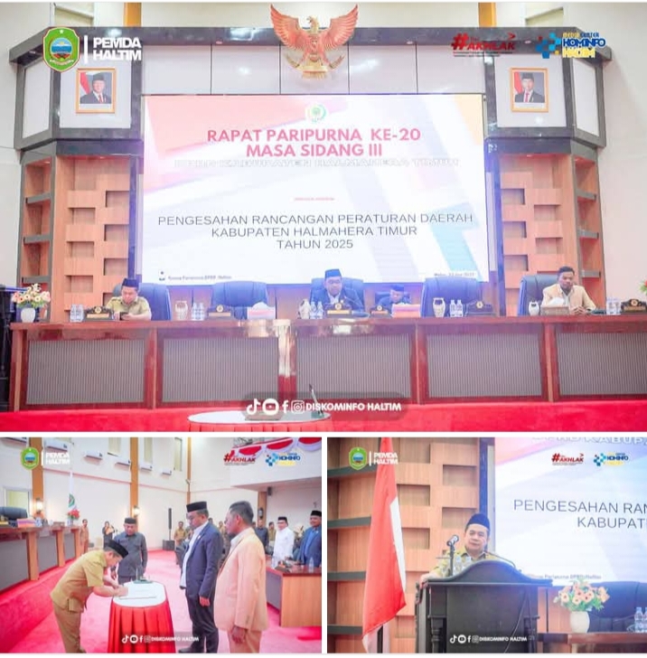 HALTIMTV.COM – Dewan Perwakilan Rakyat Daerah (DPRD) Kabupaten Halmahera Timur, hari ini Senin,22/09/25 menggelar Sidang Paripurna ke-20 untuk masa sidang yang ke III yang berlangsung di Ruang Sidang Paripurna.